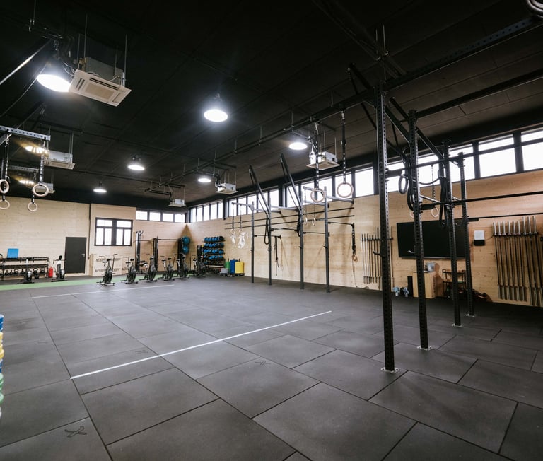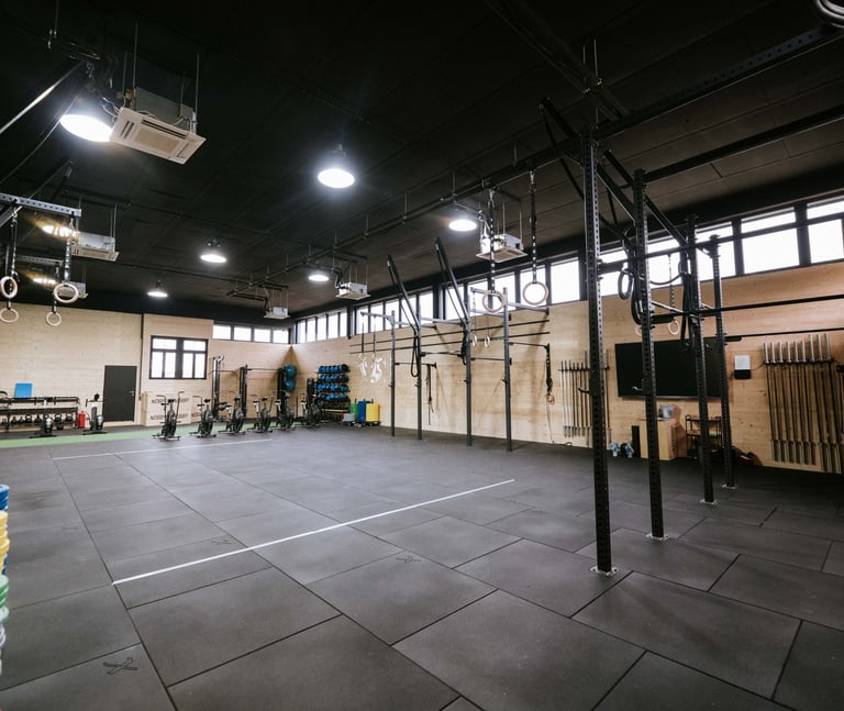 Moderne Therapieräume sowie eine großzügige Trainingsfläche mit Equipment für effektives Krafttraining, Funktionelles Training und leistungsorientiertes Athletiktraining.